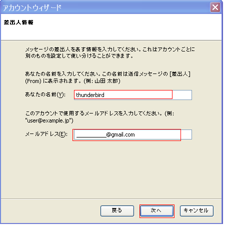 3.差出人の名前とGmailのメールアドレスを記入