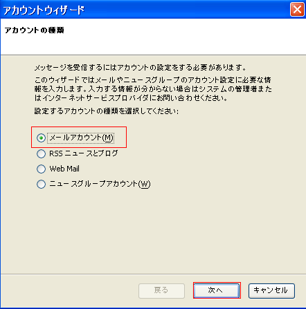 アカウント作成は、 「ファイル→新規作成→アカウント」の順に開きます。
